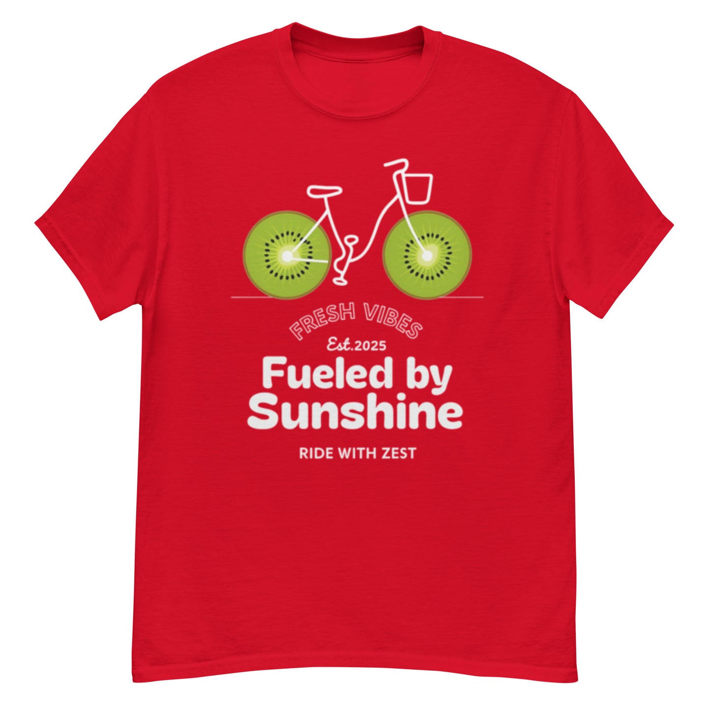 Fresh Vibes Kiwi Bicycle T-Shirt – Fueled by Sunshine Graphic Tee | Buyaro™
