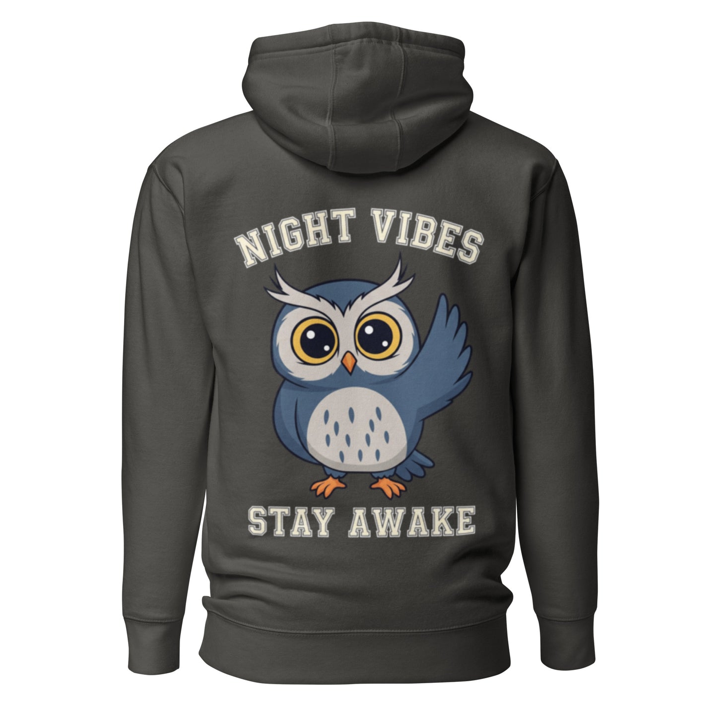 Stay cozy and make a statement with the Buyaro™ Unisex Hoodie – Night Vibes. Featuring a bold owl design with “Stay Awake” text, this premium hoodie combines comfort and style. Perfect for streetwear looks, lounging, or cool evenings.